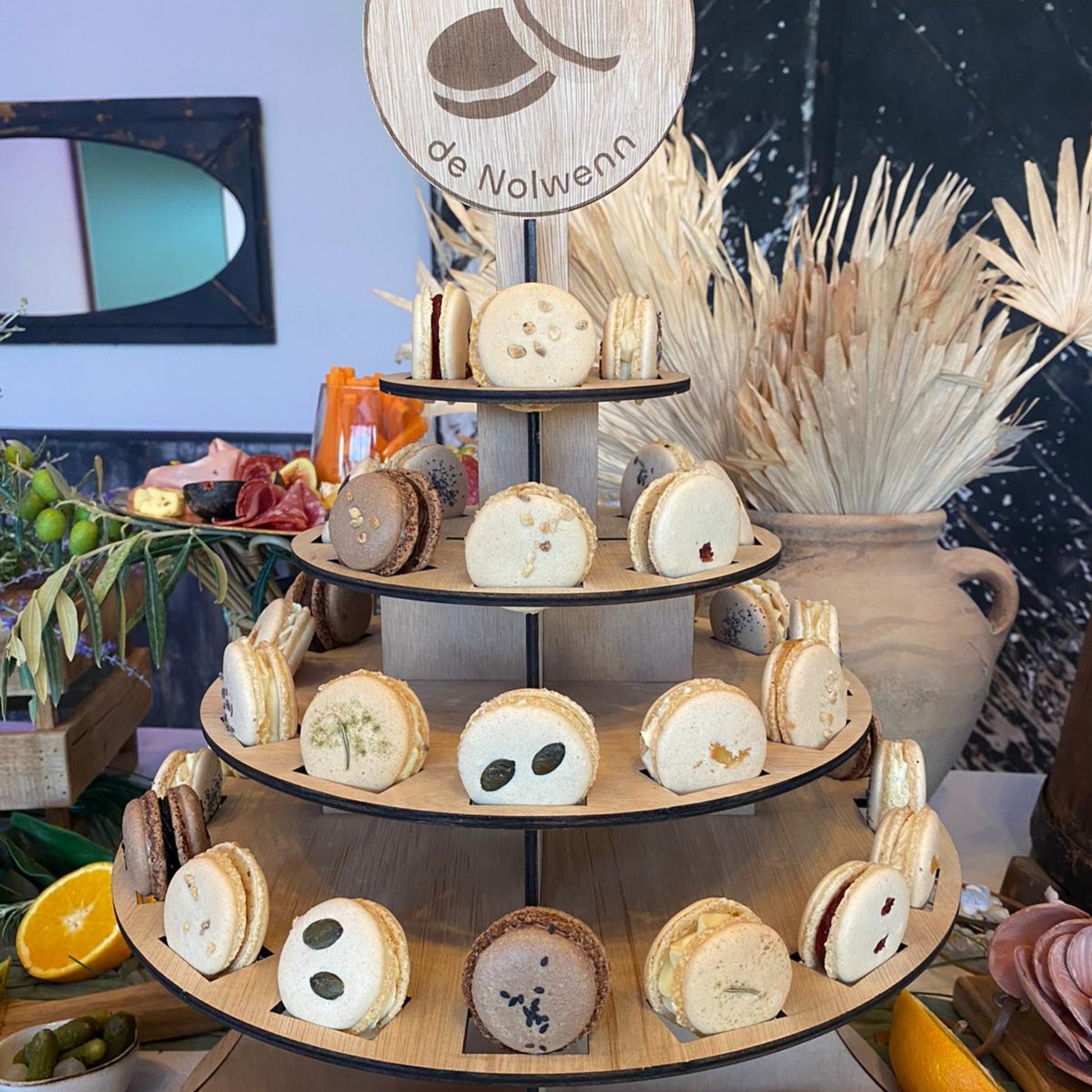 De 40 à 60 macarons mis en lumière grâce à la fabrication d'un support sur-mesure de l'entreprise locale "TIMB'UP" !