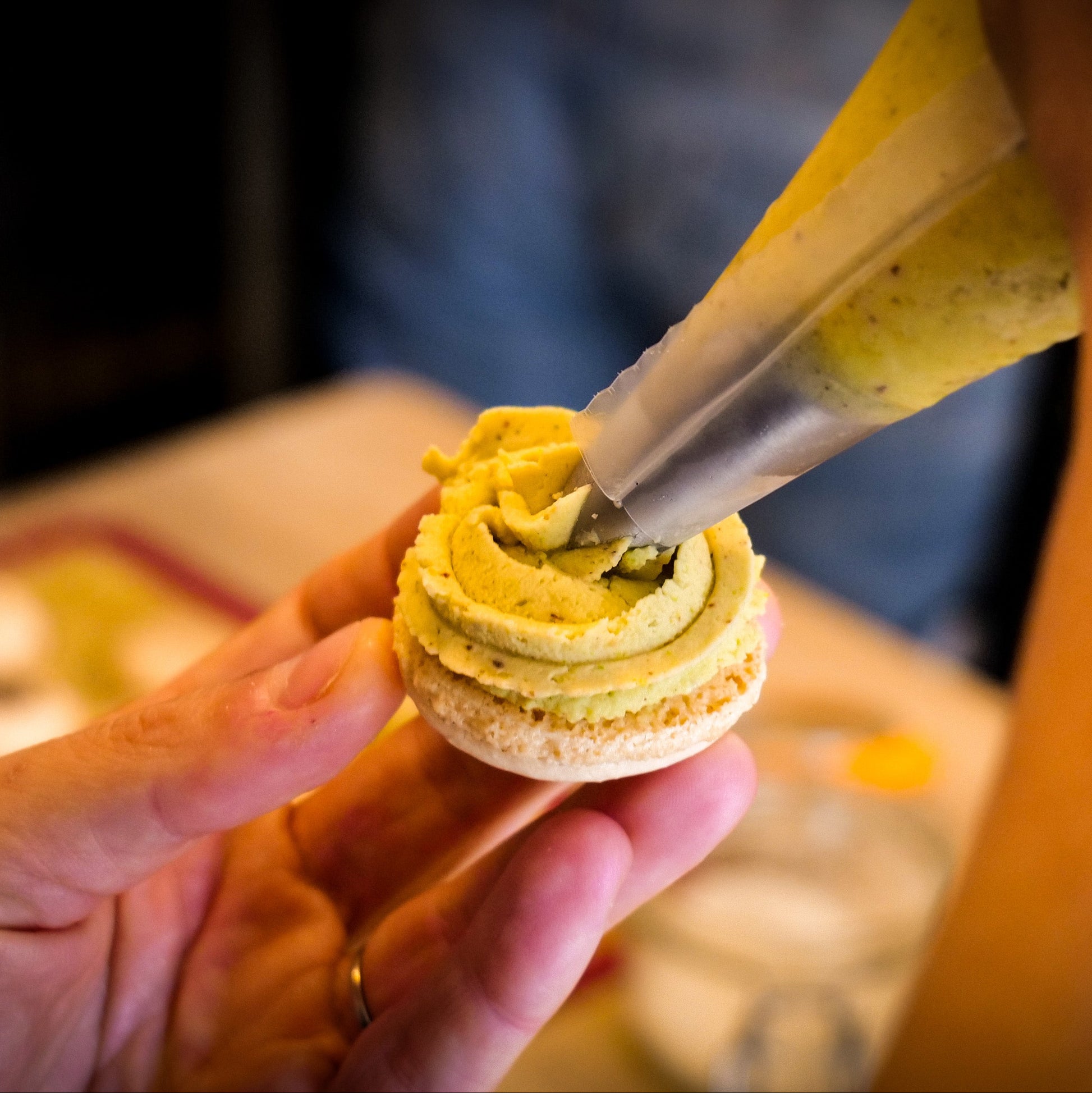 Infusion of turmeric and PGI Kampot red pepper incorporated into a whipped ganache.